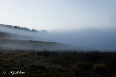 I was at this point ready to call it a day, but the visibility was so bad, it would have been treacherous to attempt to walk back through the fog over the moors, so I decided to sit it out until the light got better.